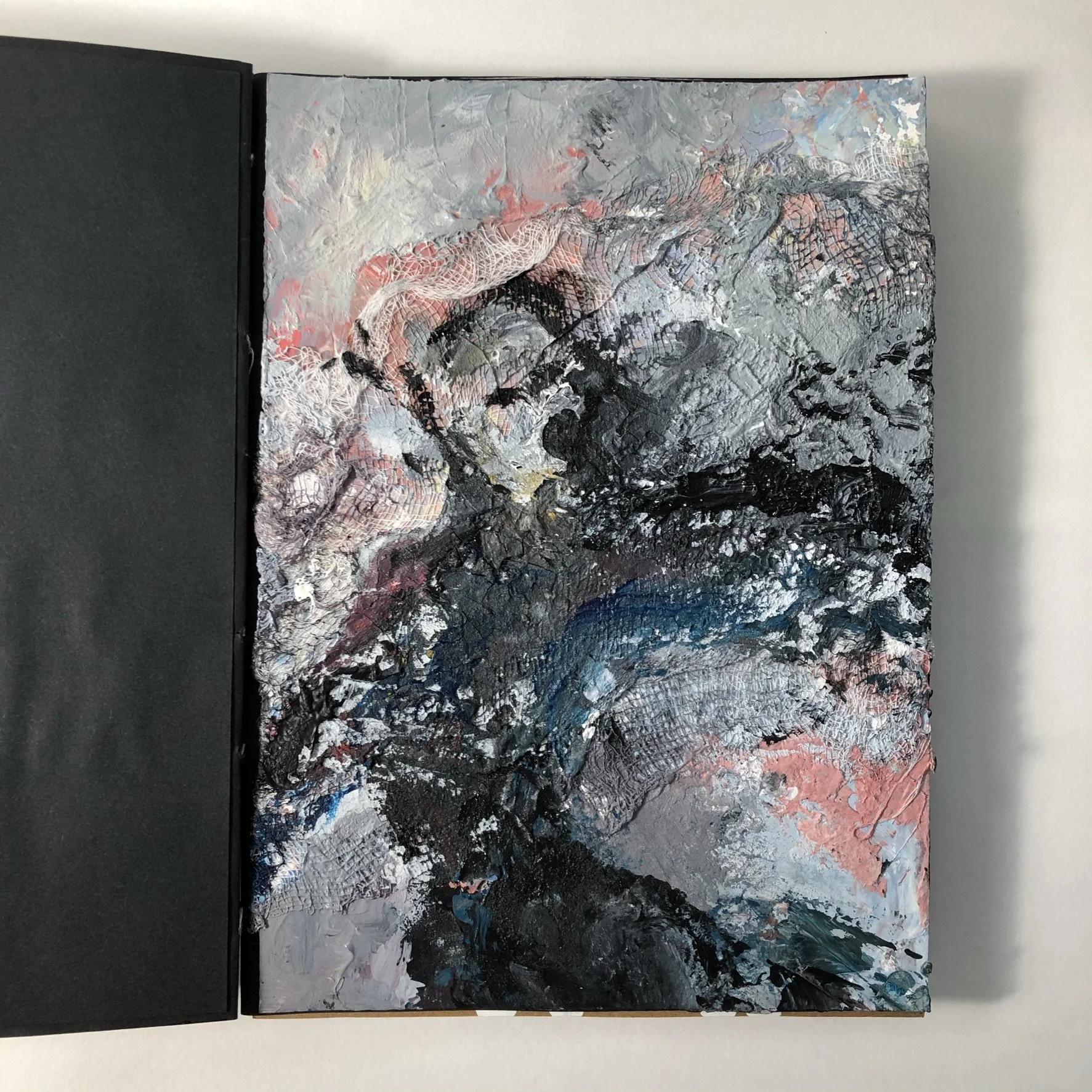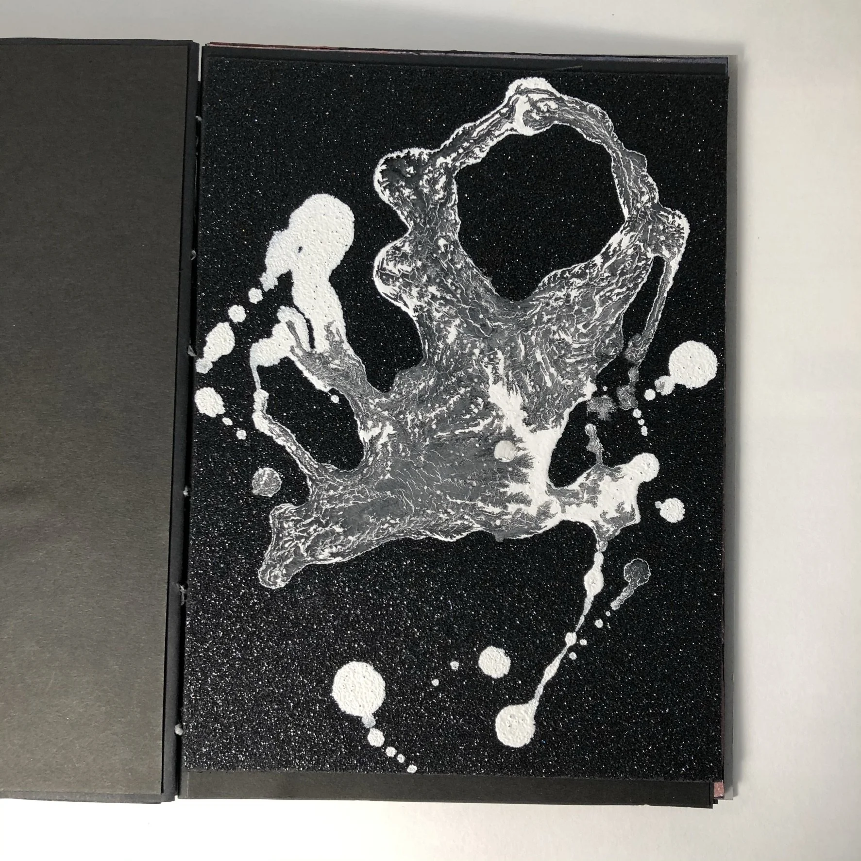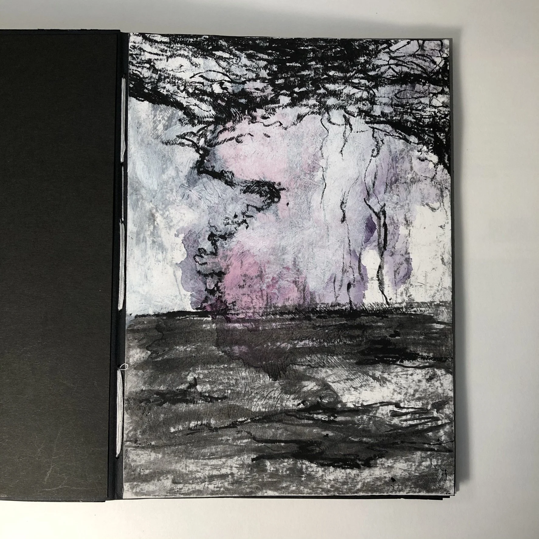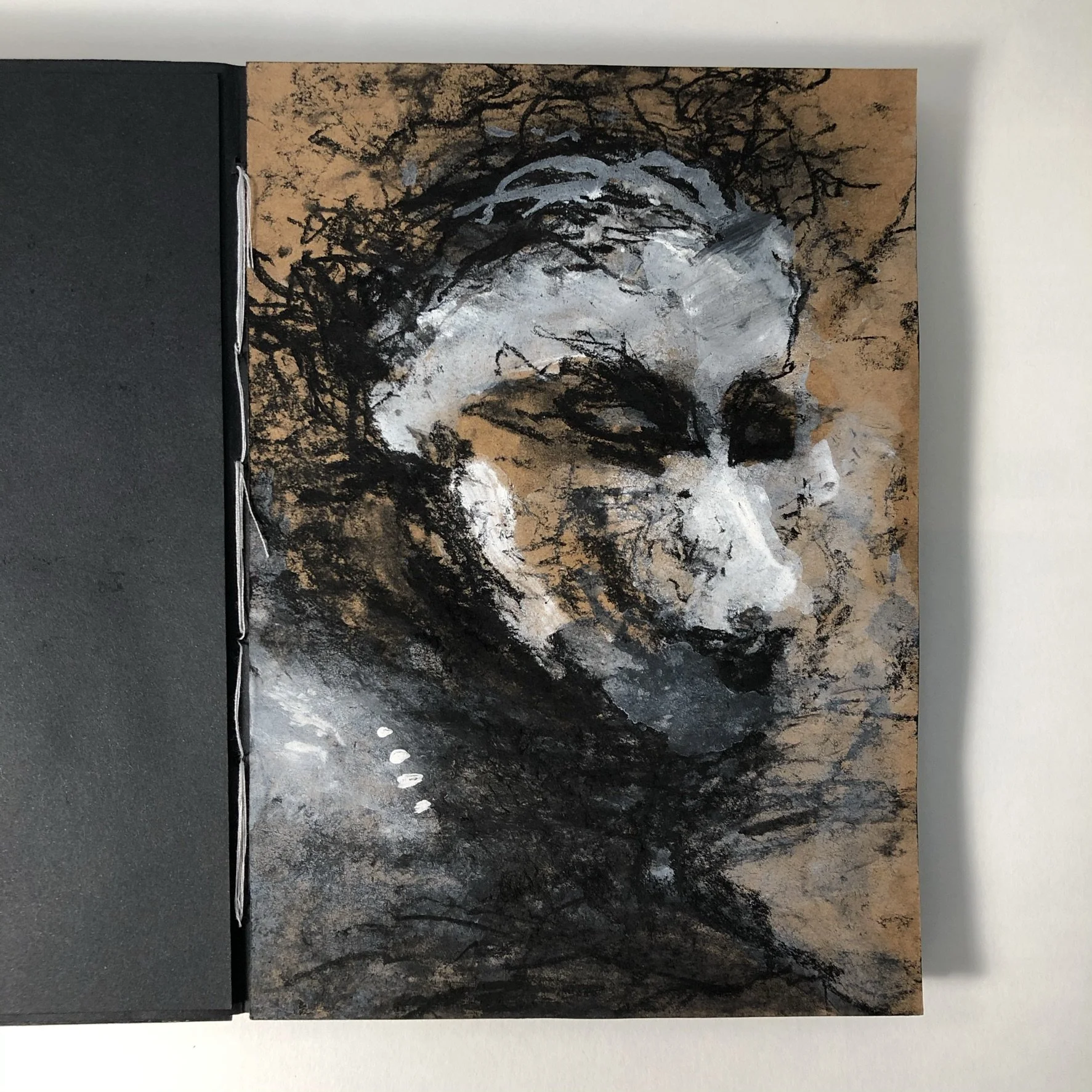 This handcraft book with kettle stitch binding is a collection of 31 paintings in memoir of the artist’s emotional journey looking after his beloved who sufferred from manic depression. Dark, hallucinatory, hysteric.
