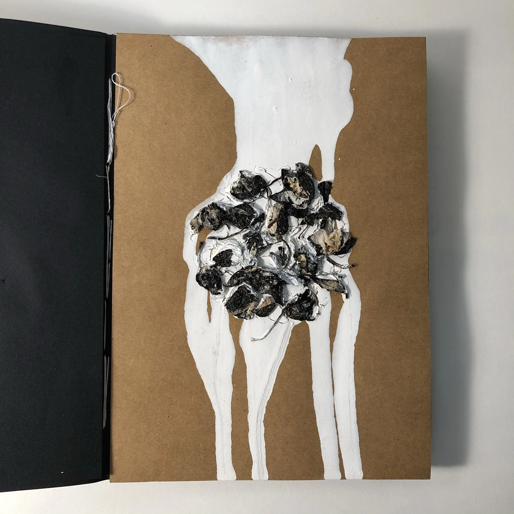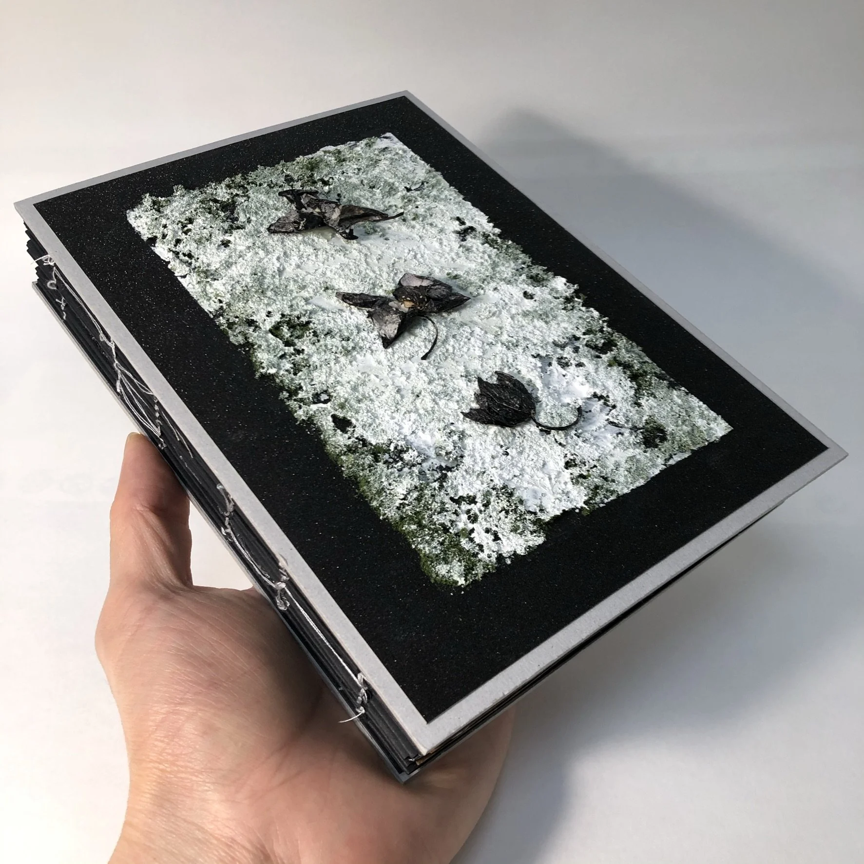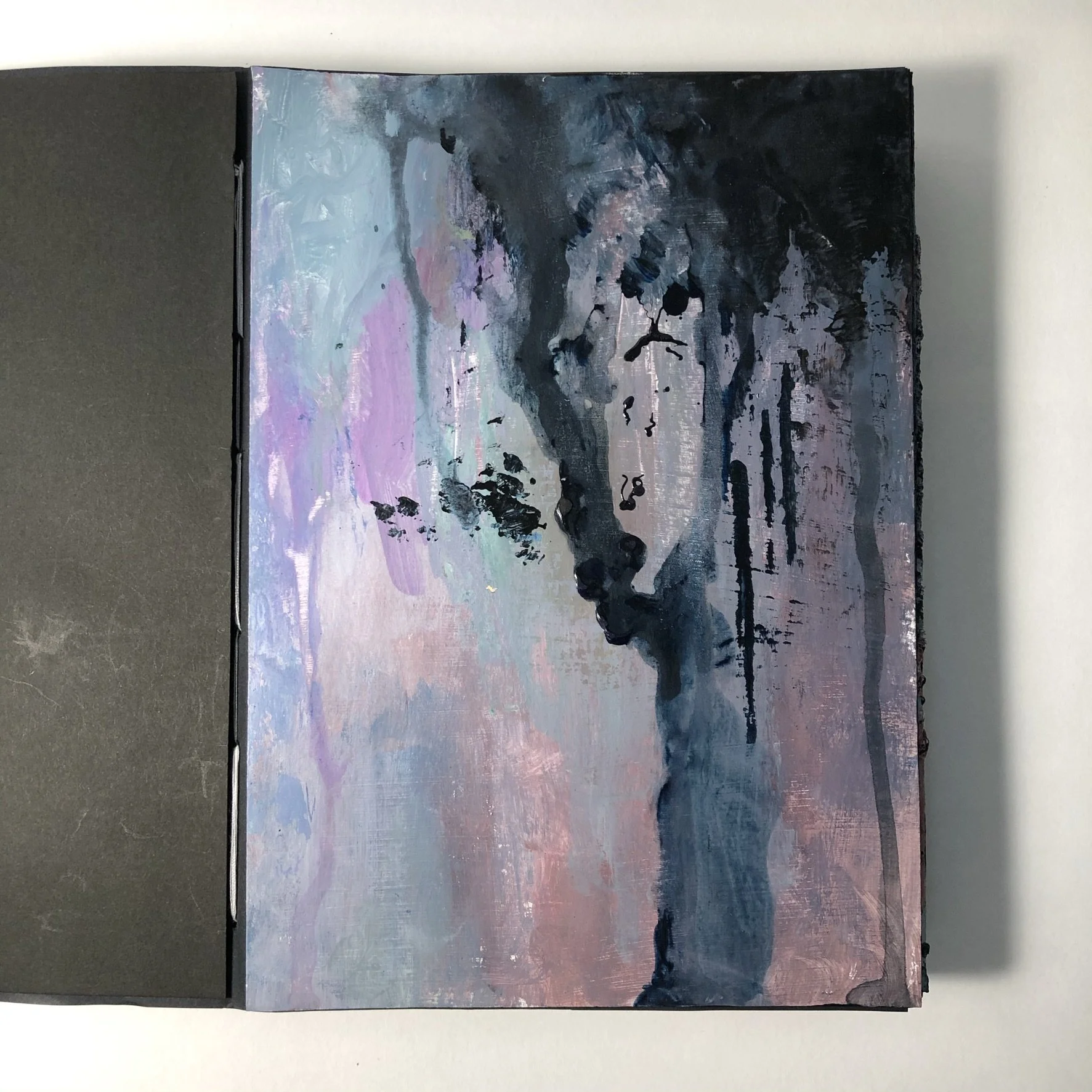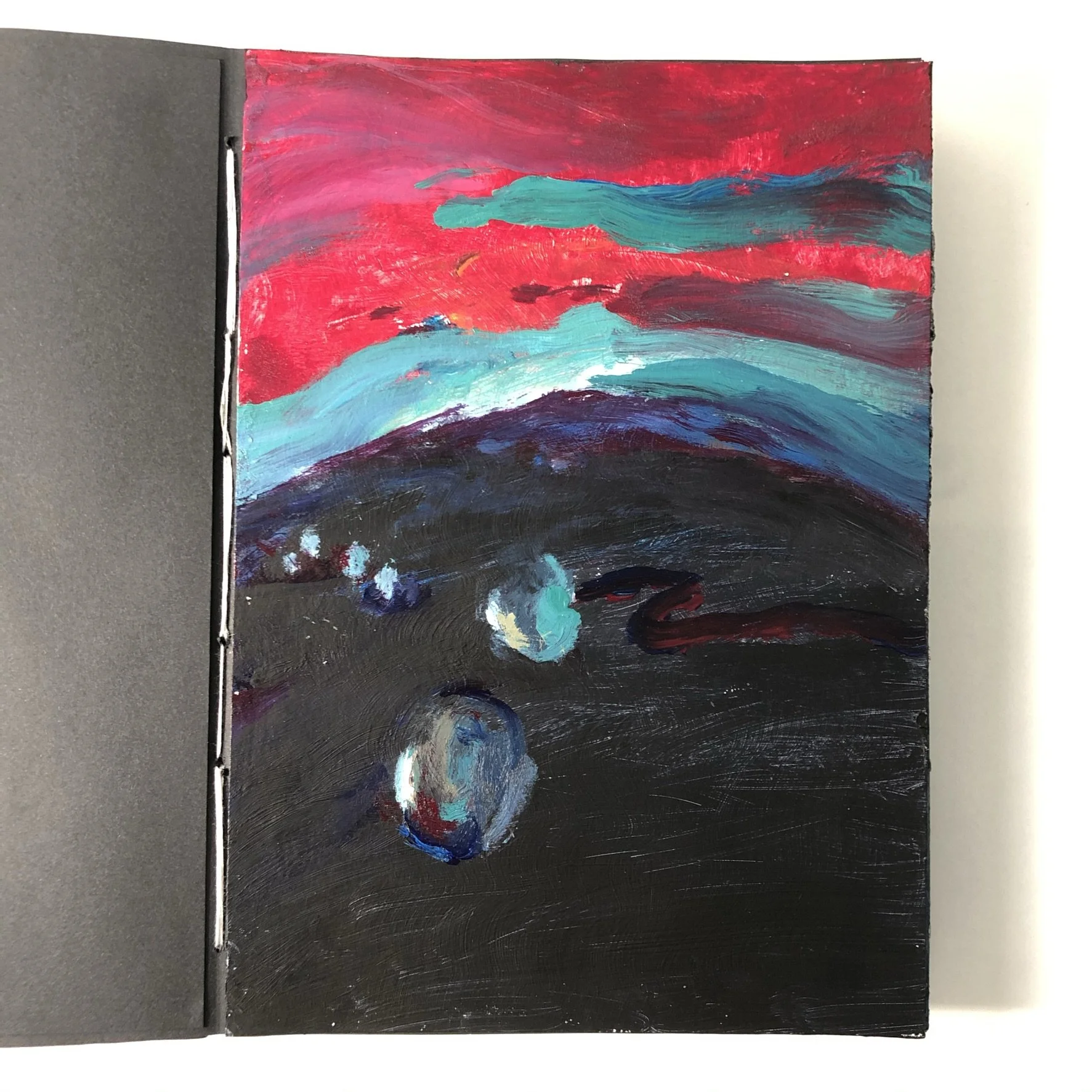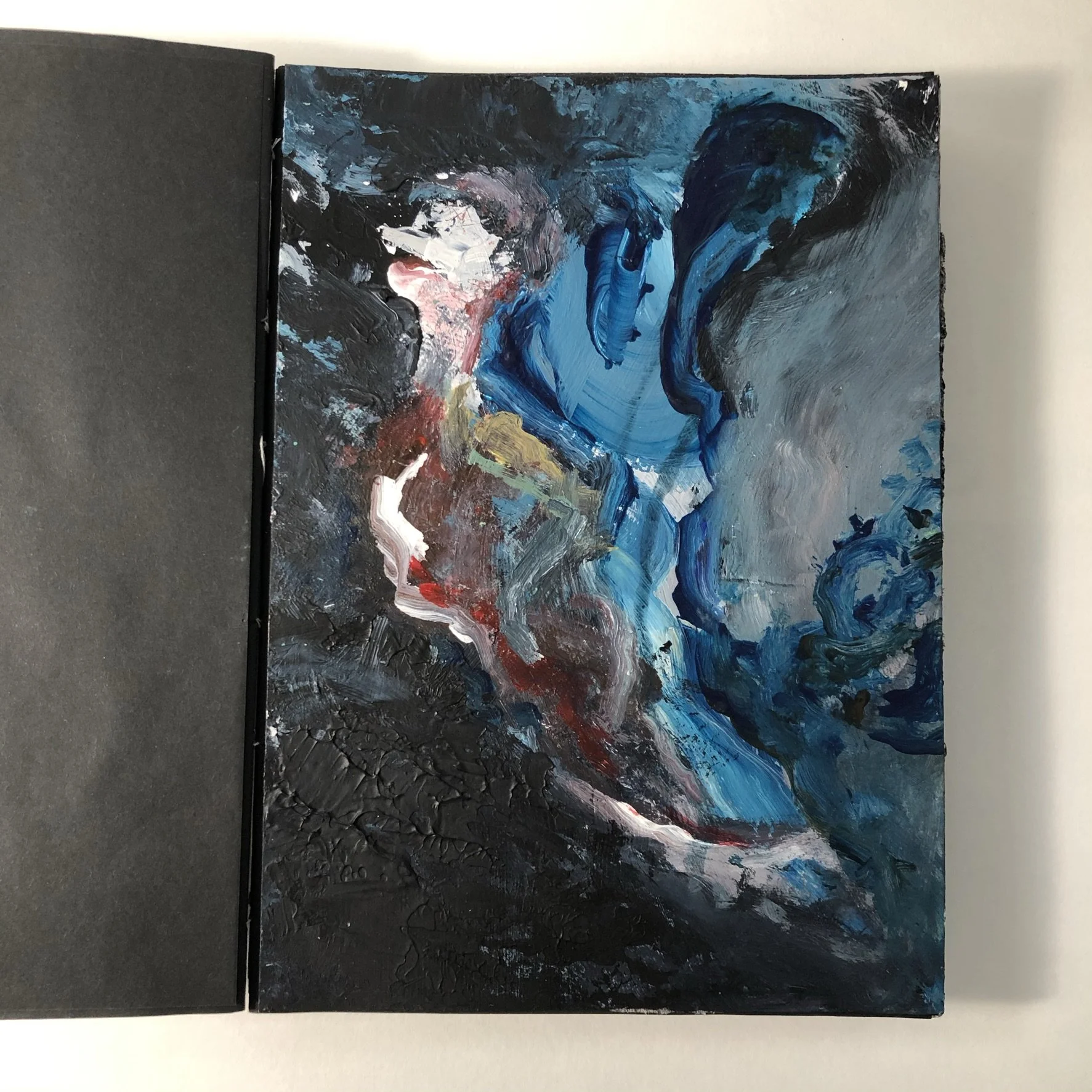 This handcraft book with kettle stitch binding is a collection of 31 paintings in memoir of the artist’s emotional journey looking after his beloved who sufferred from manic depression. Dark, hallucinatory, hysteric.