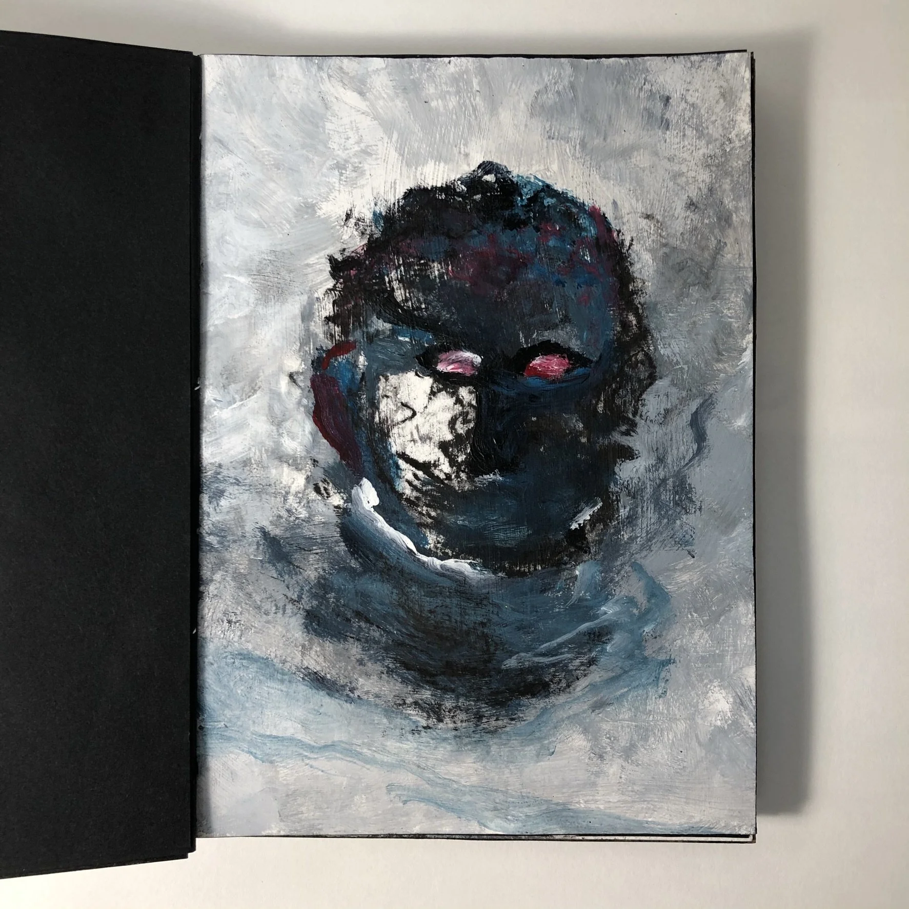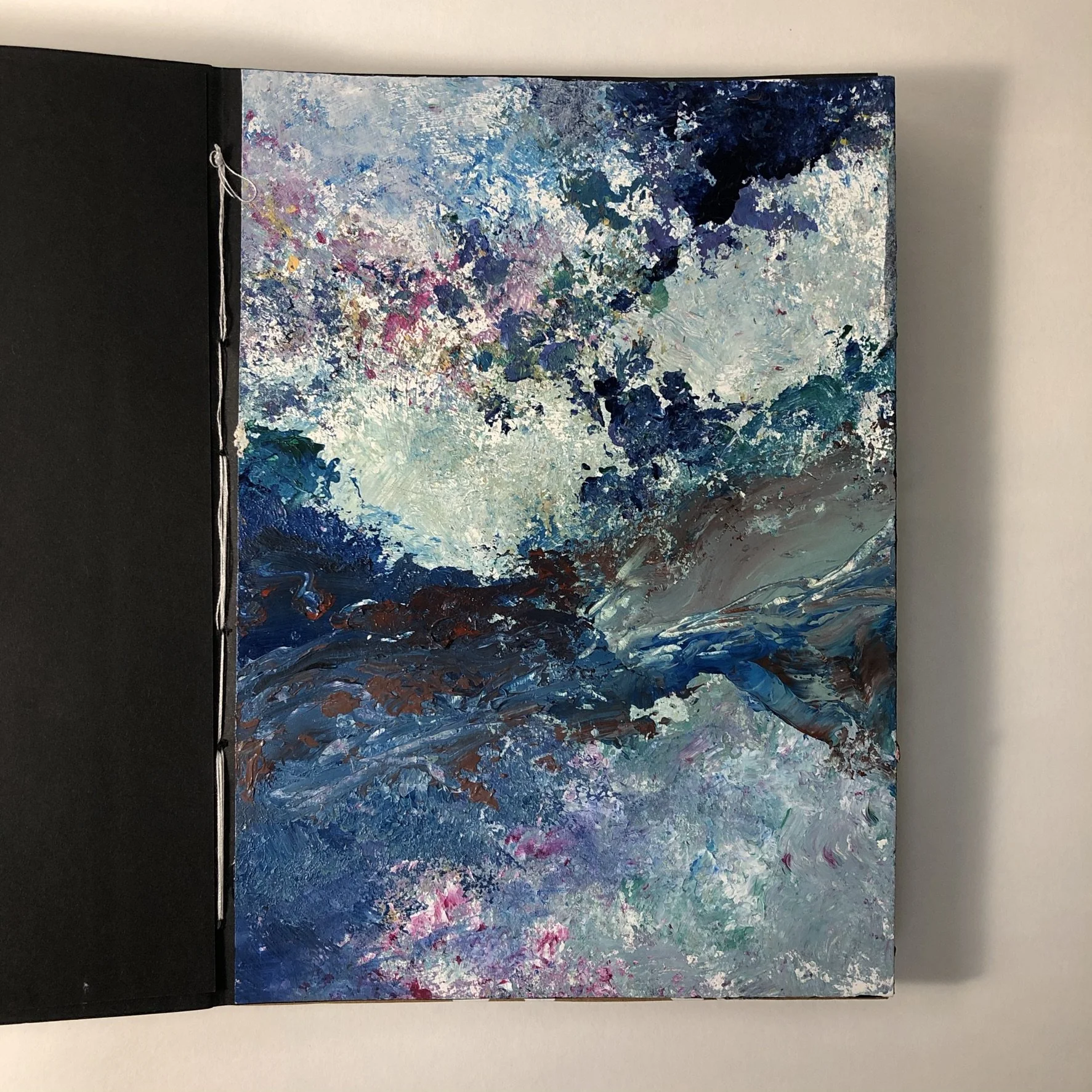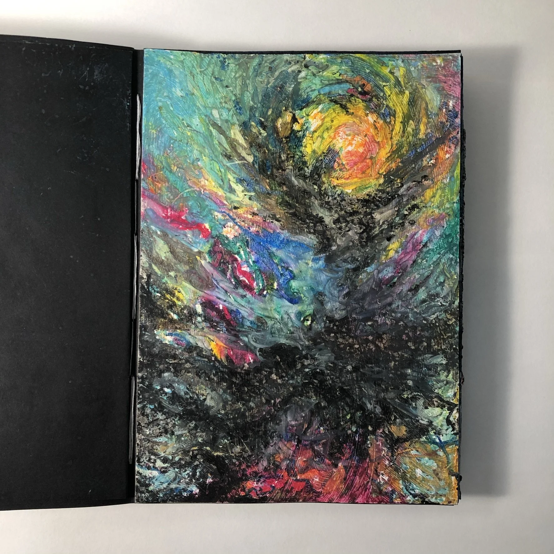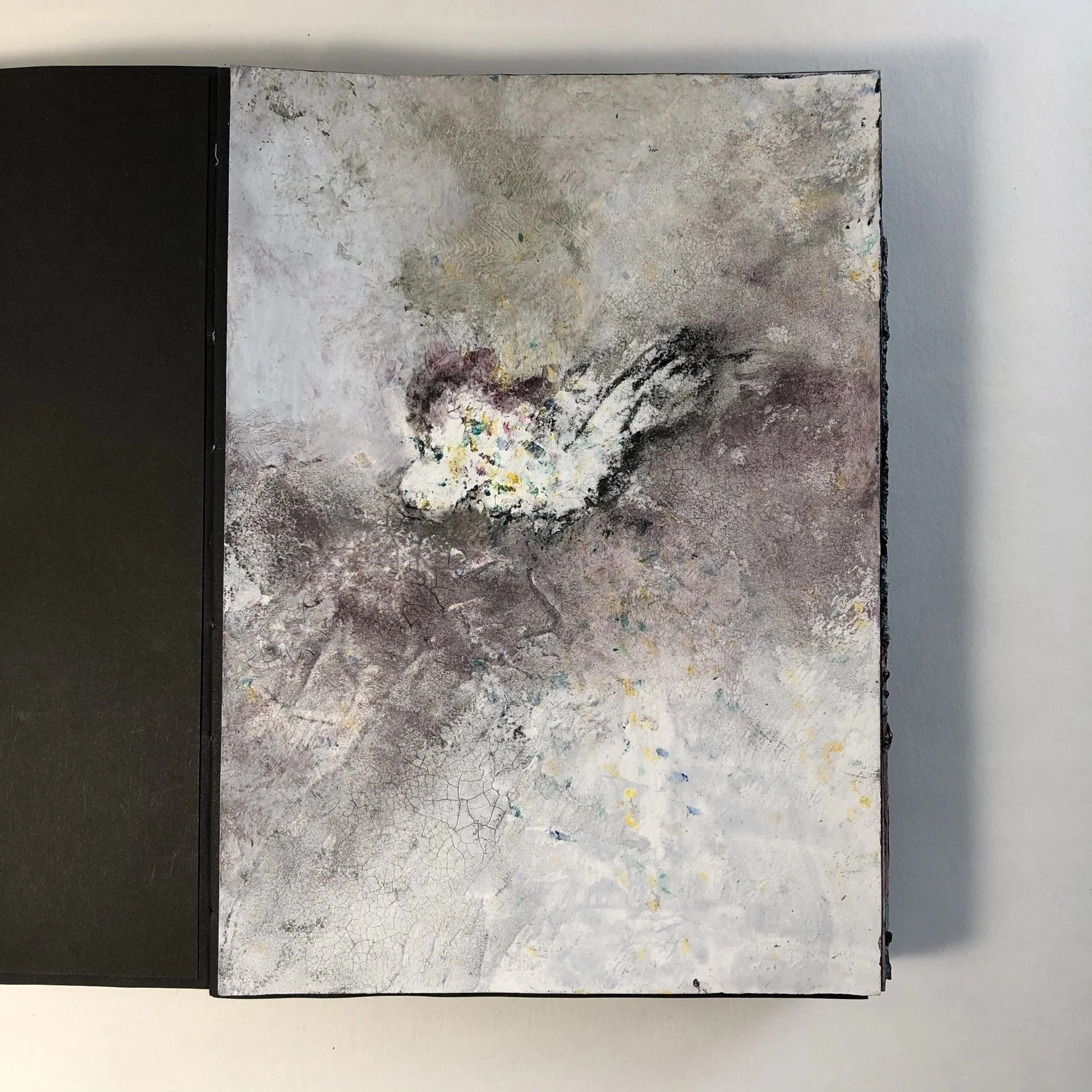 This handcraft book with kettle stitch binding is a collection of 31 paintings in memoir of the artist’s emotional journey looking after his beloved who sufferred from manic depression. Dark, hallucinatory, hysteric.